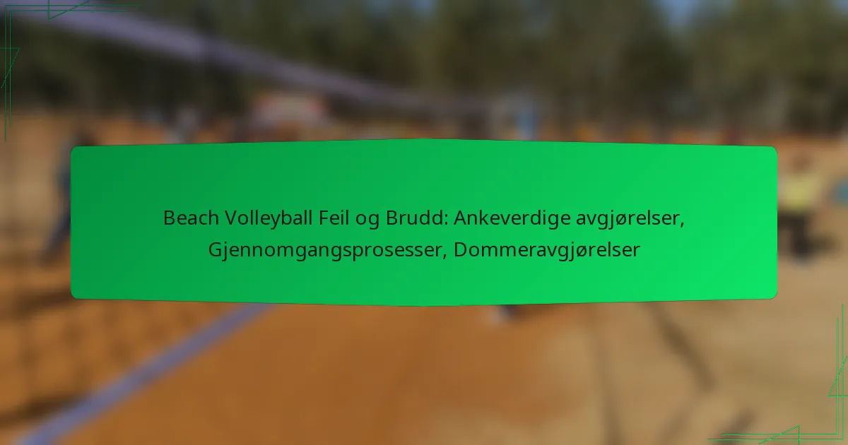 I strandvolleyball kan feil og brudd forstyrre spillets rytme og er underlagt spesifikke regler. Vanlige overtredelser inkluderer nettbrudd, fotfeil og usportslig oppførsel, som alle krever klar kommunikasjon fra dommerne gjennom verbale advarsler og visuelle signaler. Effektiv håndheving er avgjørende, ettersom dommerne må identifisere brudd, håndtere tvister og pålegge straff for å opprettholde rettferdig spill.