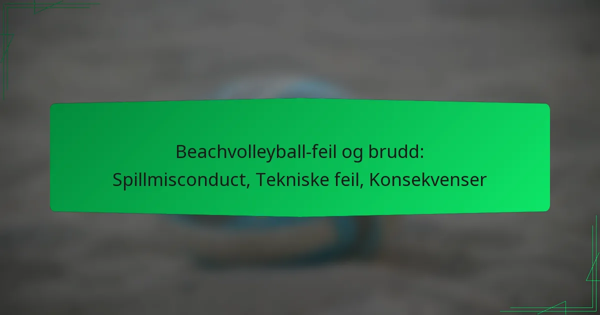 Vanlige feil og brudd i strandvolleyball kan ha betydelig innvirkning på spillets flyt. Disse inkluderer nettbrudd, fotfeil, overlappingsovertredelser og usportslig oppførsel, hver underlagt spesifikke regler og håndhevelsesprosedyrer.